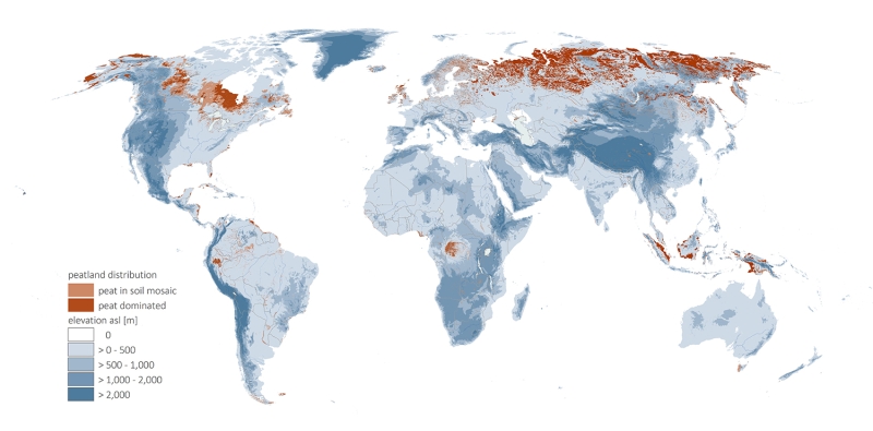 S’appuyant sur plus de 200 jeux de données individuels portant sur les tourbières et des facteurs connexes, tels que le sol et l’eau, cette carte constitue l’aperçu le plus actuel de leur répartition. Les tourbières ont été mal comprises et sous-évaluées pendant des siècles, en raison du manque de connaissances scientifiques, de données fiables, ainsi que de perceptions culturelles négatives – souvent perçues comme des terres stériles qu’il faut drainer pour les rendre utiles à des fins humaines. Pour illustrer à quel point ces milieux ont été négligés, de nombreuses petites tourbières continuent d’être documentées. À cette fin, des zones de tourbières dites « probables » ont été incluses afin d’encourager une évaluation plus approfondie et des travaux de recherche sur le terrain.