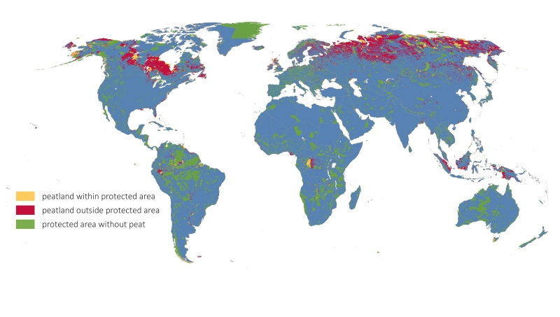 Tourbières à l’intérieur et à l’extérieur des aires protégées. Crédit : Global Peatland Hotspot Atlas, PNUE 2024