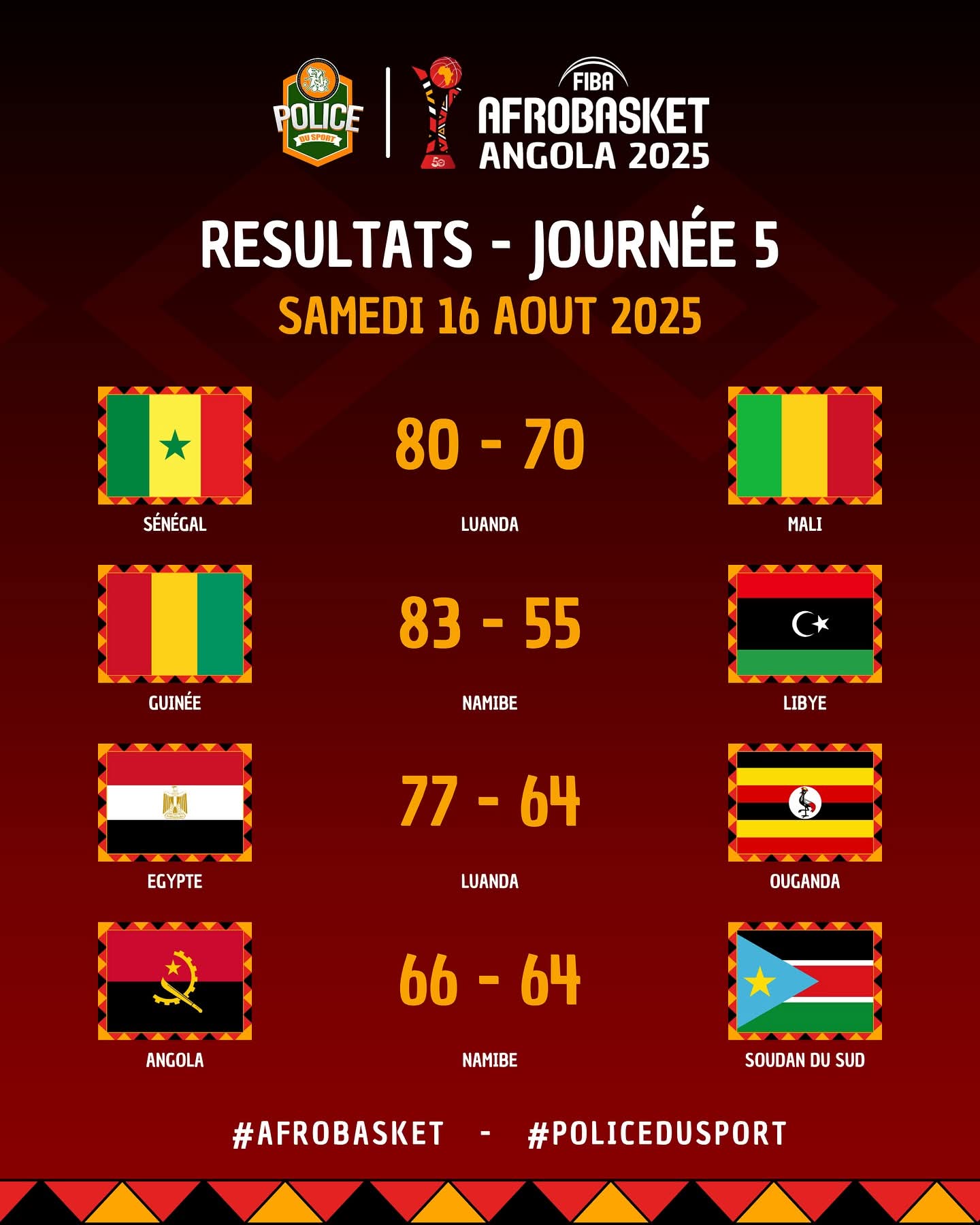 Afrobasket-2025 : l’Angola et l’Égypte déjà en quarts, le Sénégal en barrages