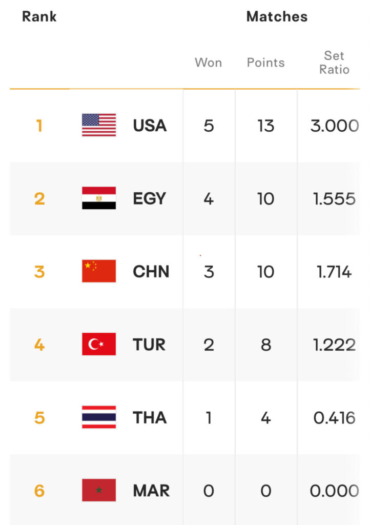 Avec un total de 108 points marqués, l’Égypte a non seulement résisté à la puissance offensive chinoise (106 points), mais elle a su exploiter les erreurs adverses (24 fautes offertes par la Chine). La maîtrise des moments clés, notamment lors du tie-break conclu sur le score serré de 15-13, témoigne de la maturité et du sang-froid de cette jeune génération égyptienne.