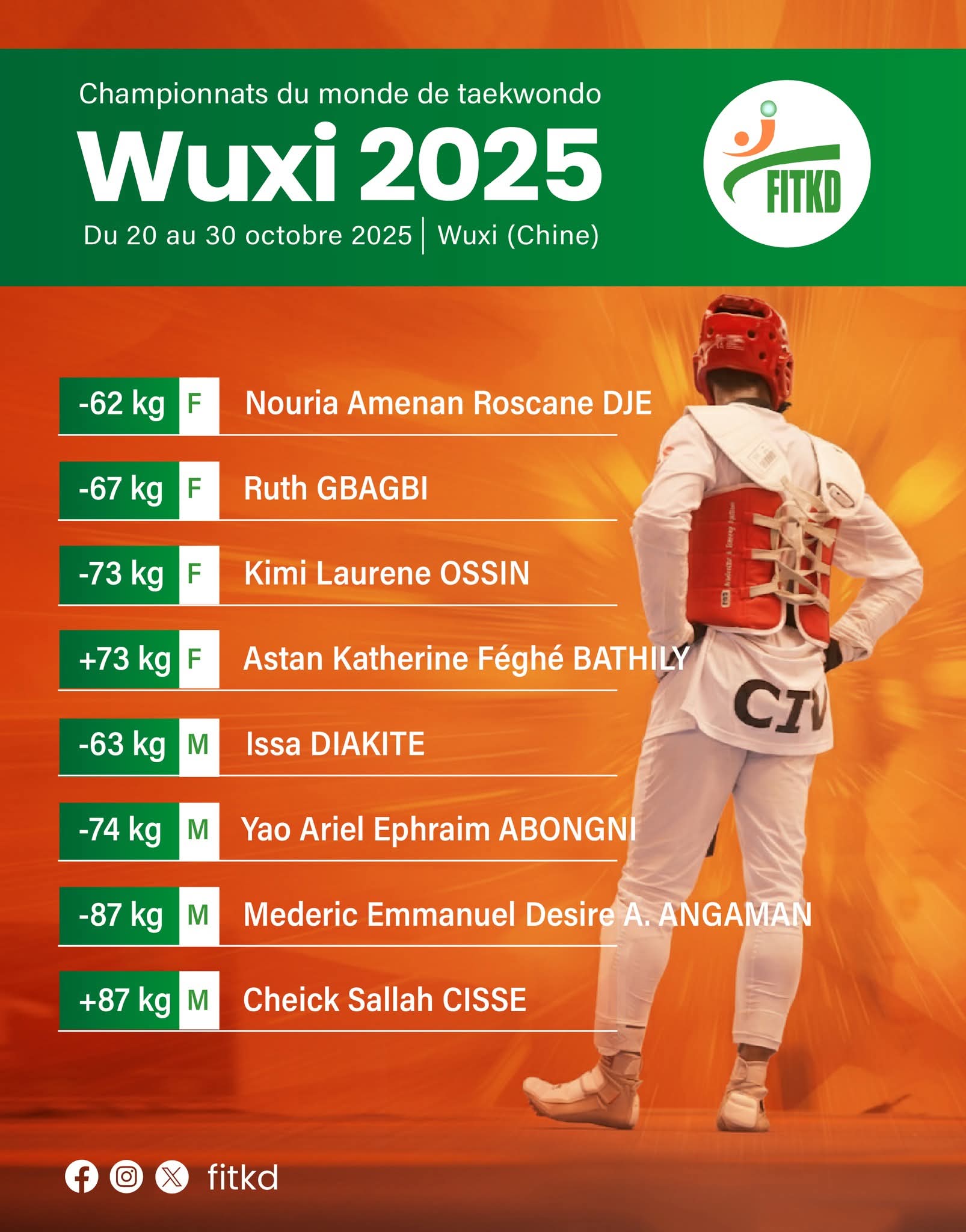 Taekwondo Mondial 2025 : 8 Guerriers Ivoiriens en Route pour Wuxi !