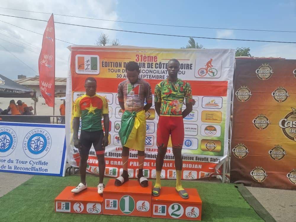 Pour cette 1ʳᵉ étape longue de 106,8 km entre Aboisso et Adiaké, les cyclistes ont livré une bataille acharnée sur l’asphalte. Et à l’arrivée, le Cameroun s’est imposé en maître, suivi du Mali et du Burkina Faso , complétant ainsi le podium.