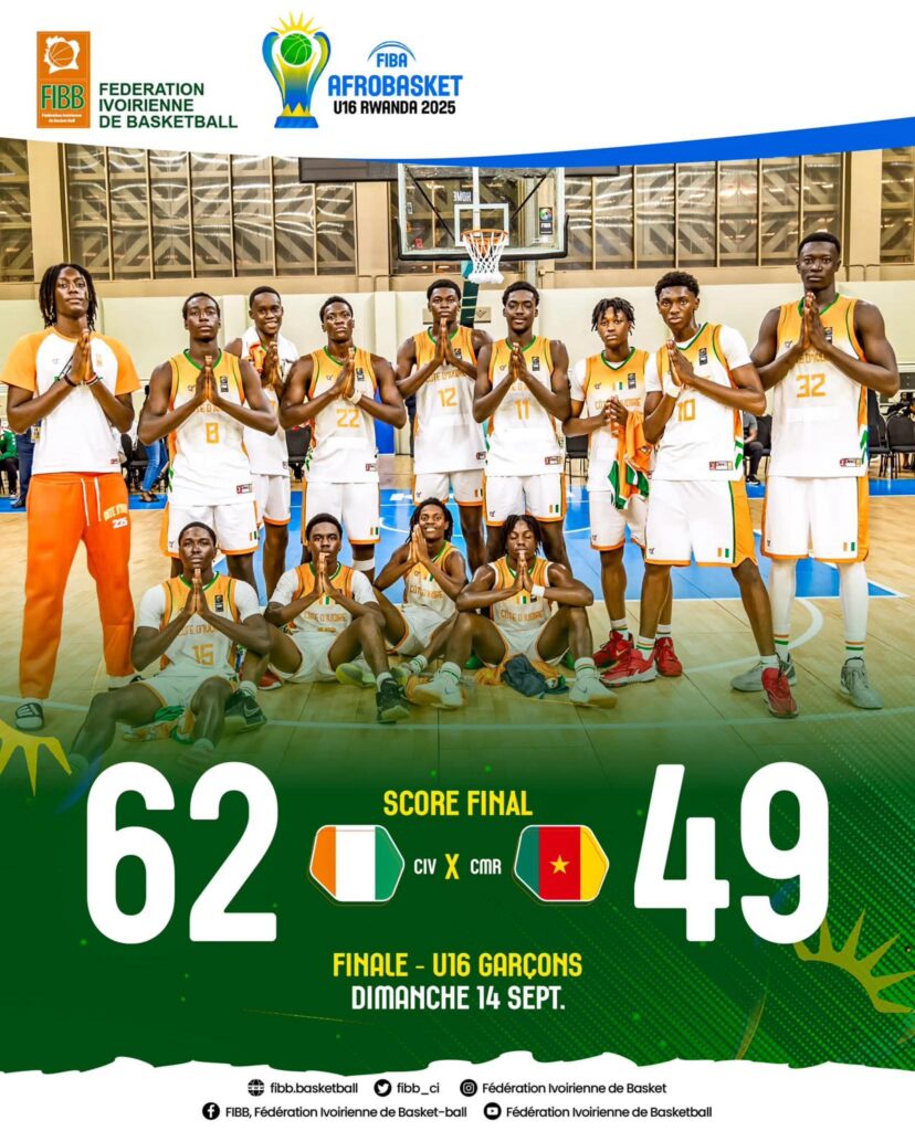 Invincibles du début à la fin (6 victoires en 6 matchs), les Éléphanteaux ont offert à la Côte d’Ivoire son premier sacre continental en U16 garçons, en dominant les Lionceaux du Cameroun (62–49).