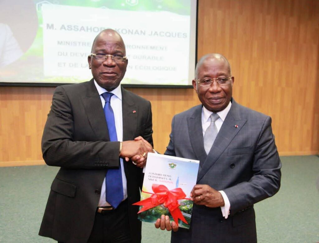 À l’approche de la 30ᵉ Conférence des Parties sur le climat (COP30), la Côte d’Ivoire vient de franchir une étape décisive dans sa politique de lutte contre le changement climatique. Le jeudi 30 octobre 2025, le Ministre de l’Environnement, du Développement Durable et de la Transition Écologique, Assahoré Konan Jacques, a officiellement remis les Contributions Déterminées au niveau National (CDN 3.0) au Ministre des Affaires étrangères, de l’Intégration africaine et des Ivoiriens de l’extérieur, Chef de la délégation ivoirienne à la COP30, ainsi qu’aux partenaires ayant accompagné le processus de révision entamé en février dernier.
