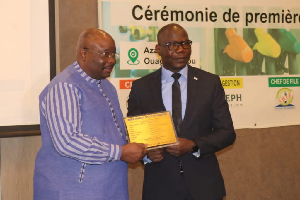 La cérémonie s’est tenue en présence du représentant du directeur général de la BRVM, Moussa Davou, du représentant du président-directeur général de Titrisation, Jean Wiliam Kouman, ainsi que de la directrice du marché des capitaux de la Société burkinabè d’intermédiation financière (SBIF), Gisèle Colgo, et du représentant du directeur général de la SONABHY, Mouni Nikiéma.