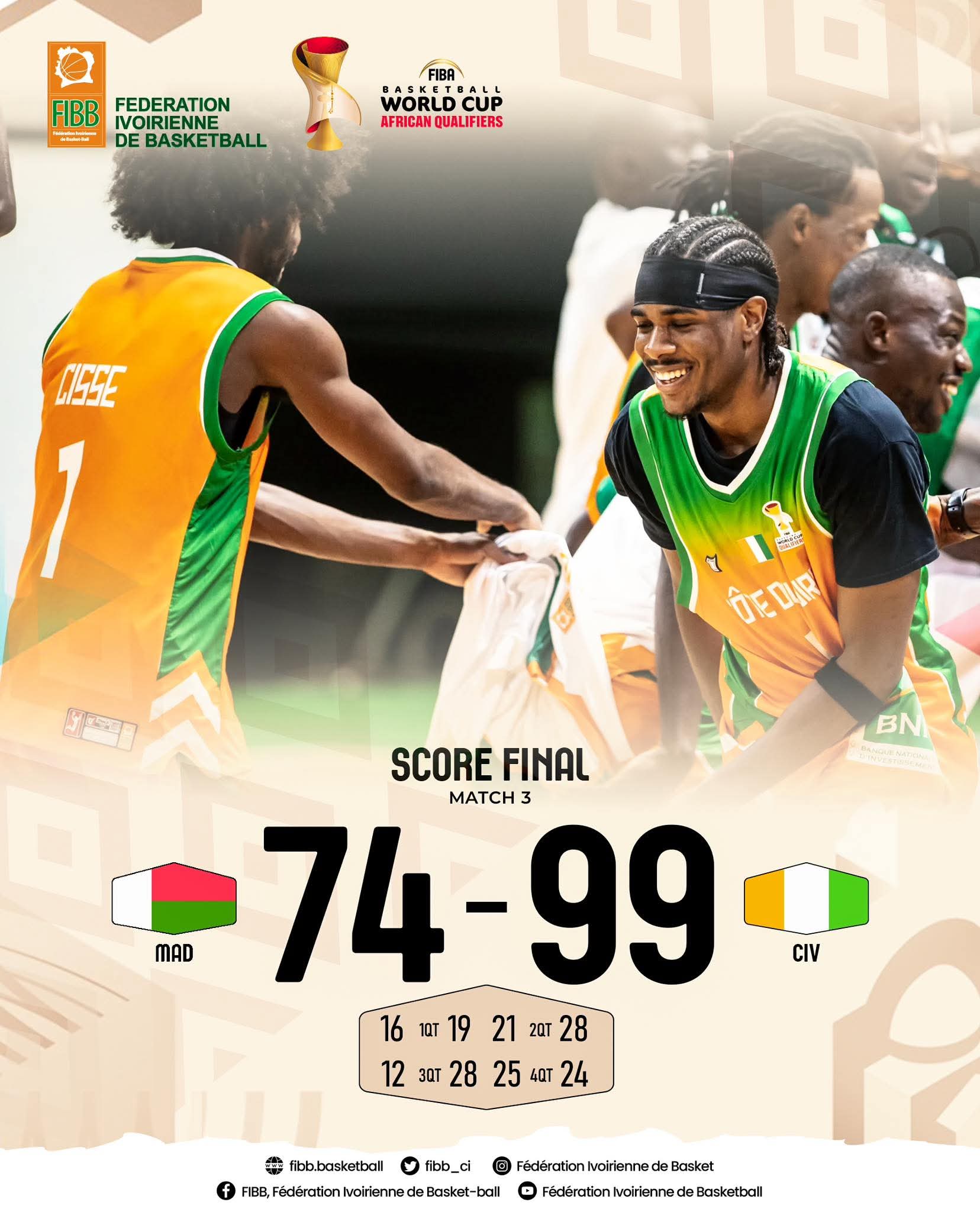 Basketball/Qualification Mondial-2027 : la Côte d’Ivoire réussit un sans-faute et prend la tête du groupe B