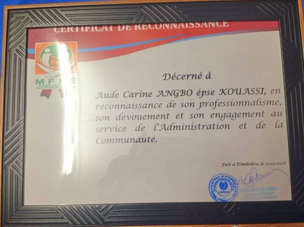 Grande artisane de la dynamique sportive dans la région du N’Zi, Aude Carine ANGBO épouse KOUASSI, entame ainsi l’année 2026 sous les meilleurs auspices, portée par une reconnaissance qui vient saluer son engagement constant au service du sport et du développement local.
